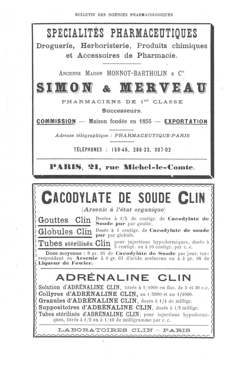 Bulletin des sciences pharmacologiques : organe scientifique et professionnel [Annexes : partie professionnelle et commerciale]