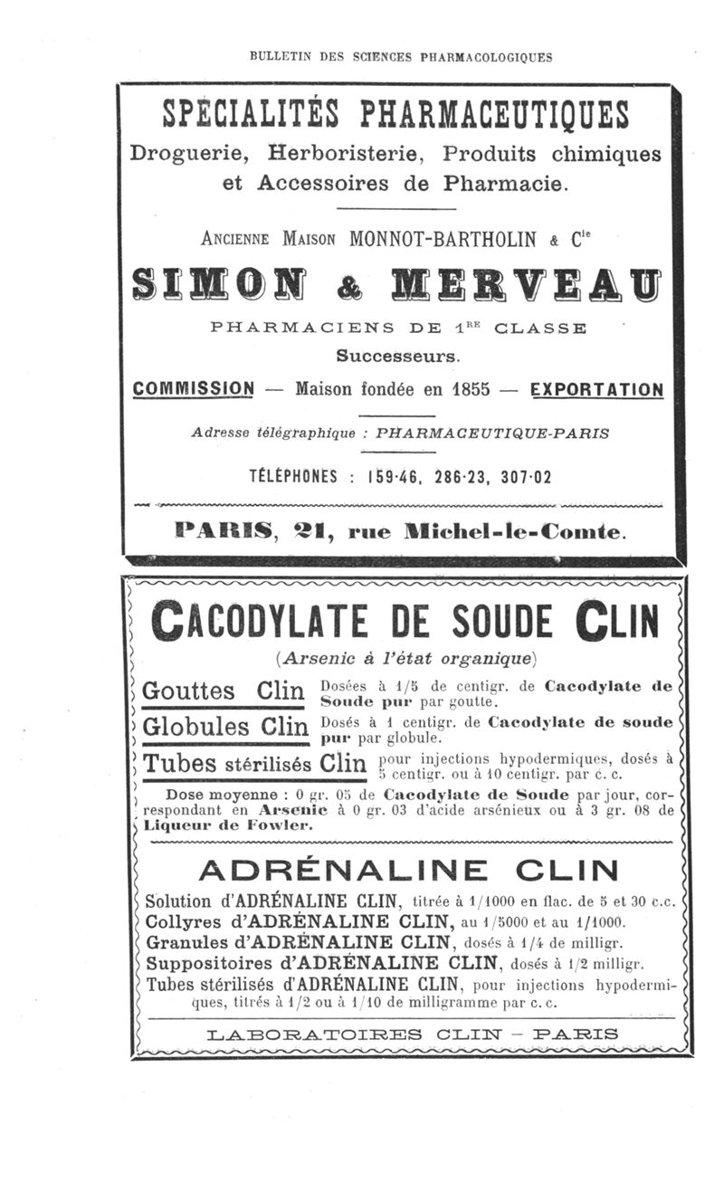 Bulletin des sciences pharmacologiques : organe scientifique et professionnel [Annexes : partie professionnelle et commerciale]