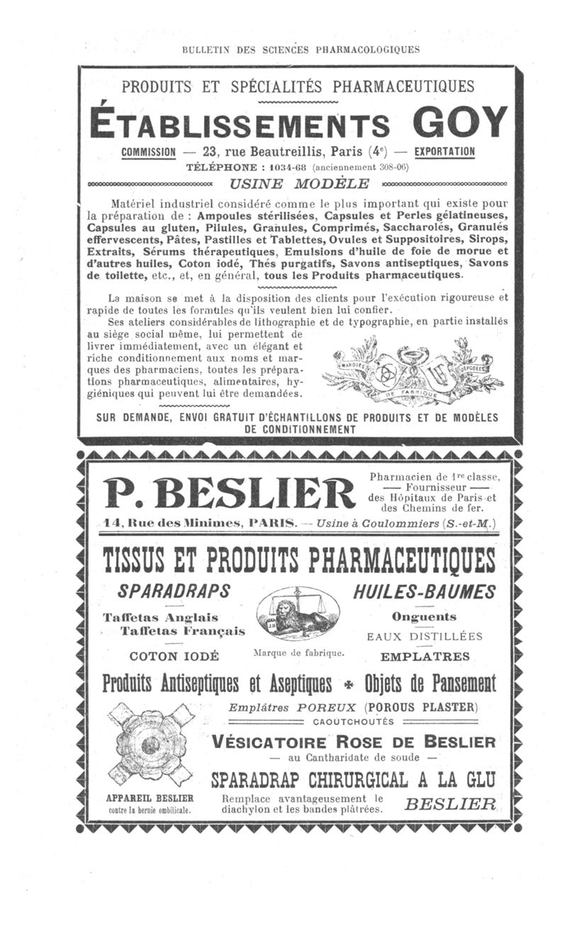 Bulletin des sciences pharmacologiques : organe scientifique et professionnel [Annexes : partie professionnelle et commerciale]