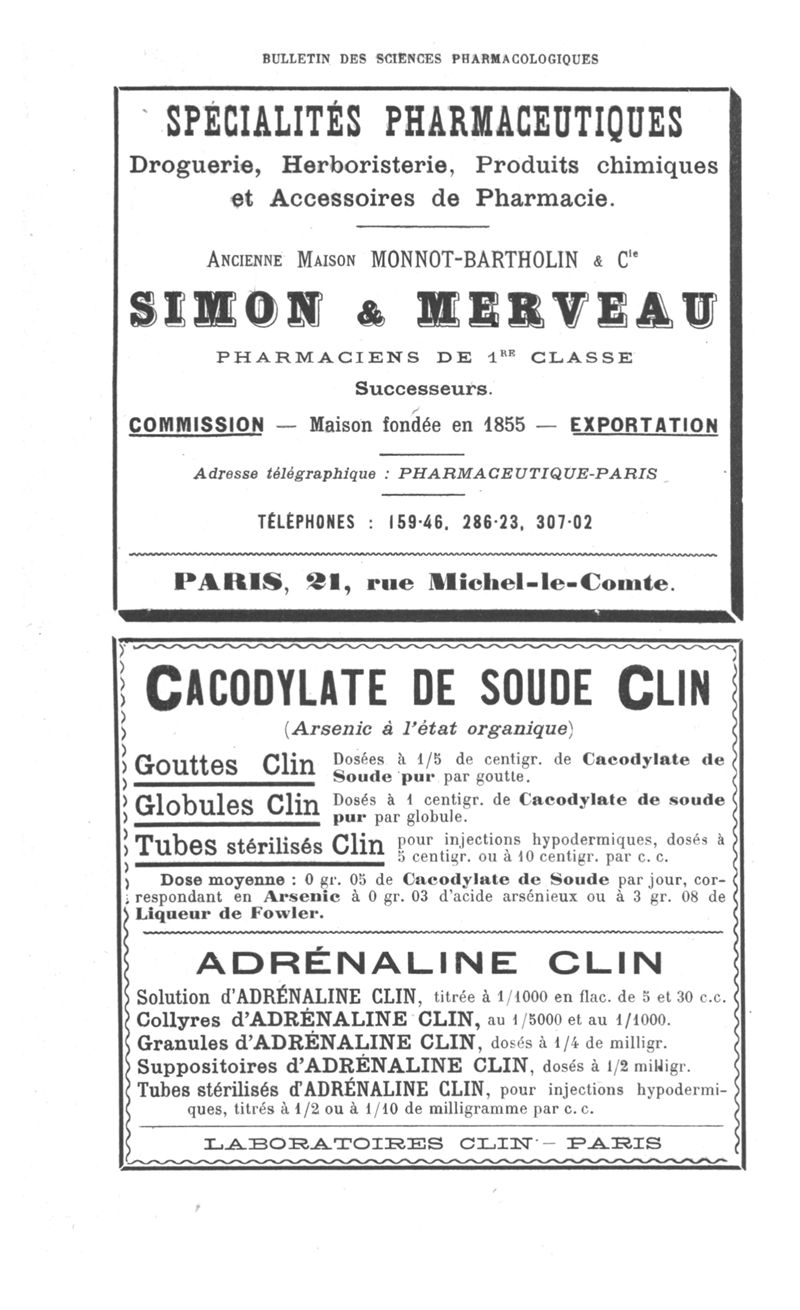 Bulletin des sciences pharmacologiques : organe scientifique et professionnel [Annexes : partie professionnelle et commerciale]