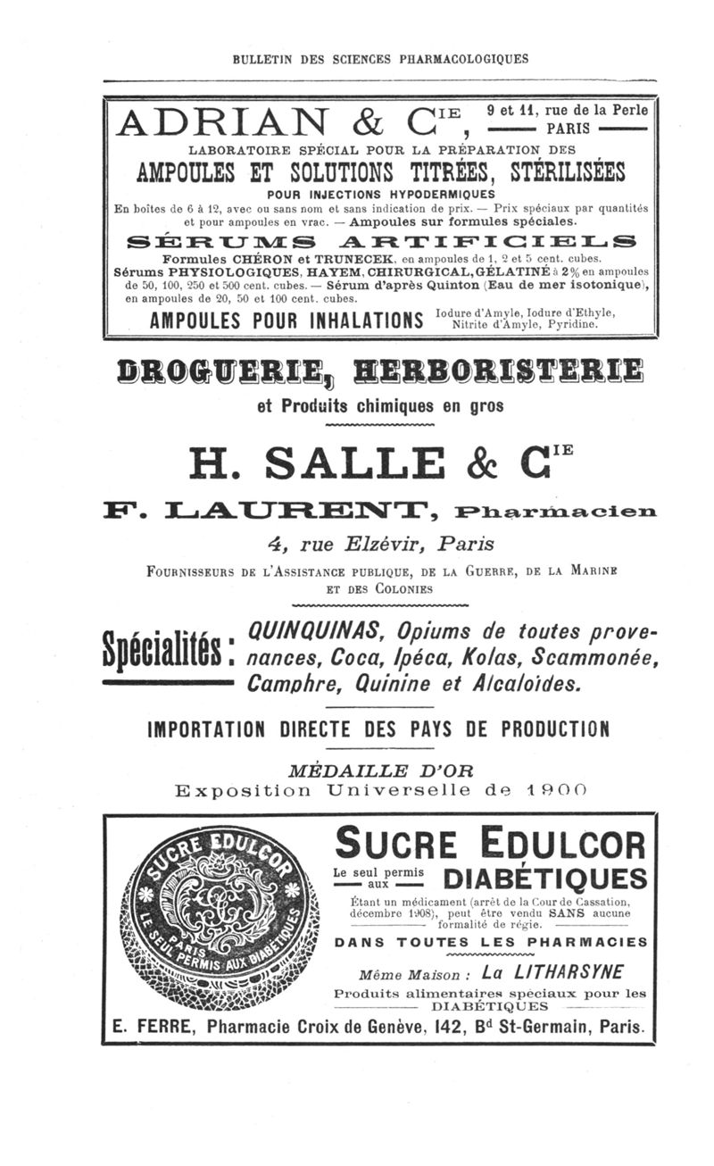 Bulletin des sciences pharmacologiques : organe scientifique et professionnel [Annexes : partie professionnelle et commerciale]