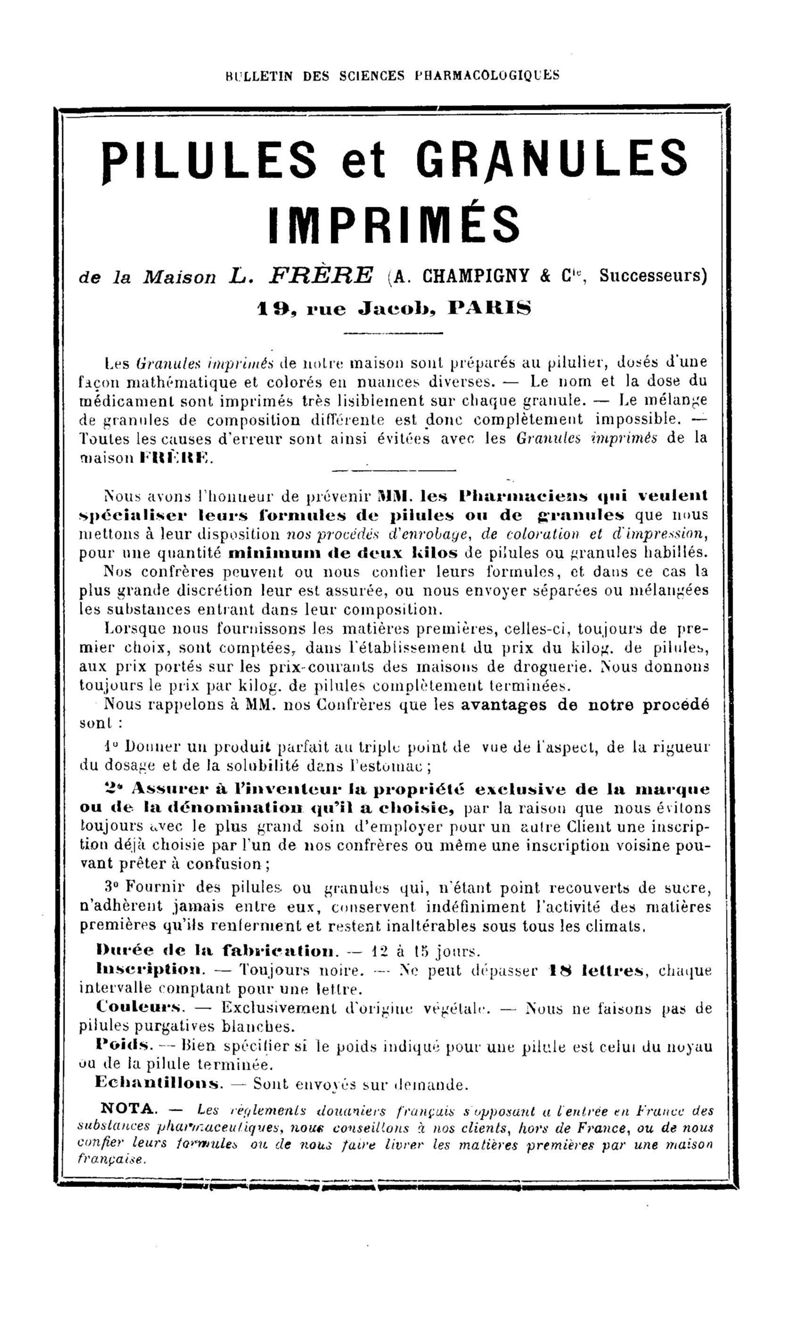 Bulletin des sciences pharmacologiques : organe scientifique et professionnel [Annexes : partie professionnelle et commerciale]