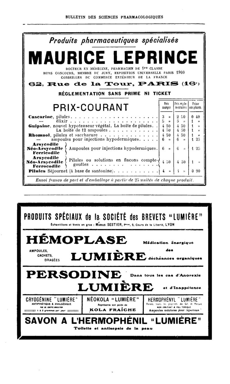 Bulletin des sciences pharmacologiques : organe scientifique et professionnel [Annexes : partie professionnelle et commerciale]