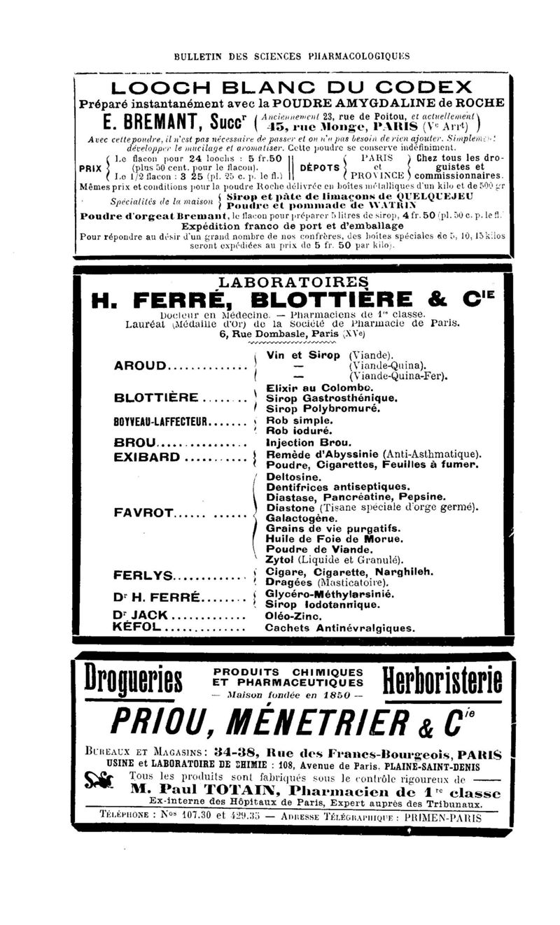 Bulletin des sciences pharmacologiques : organe scientifique et professionnel [Annexes : partie professionnelle et commerciale]