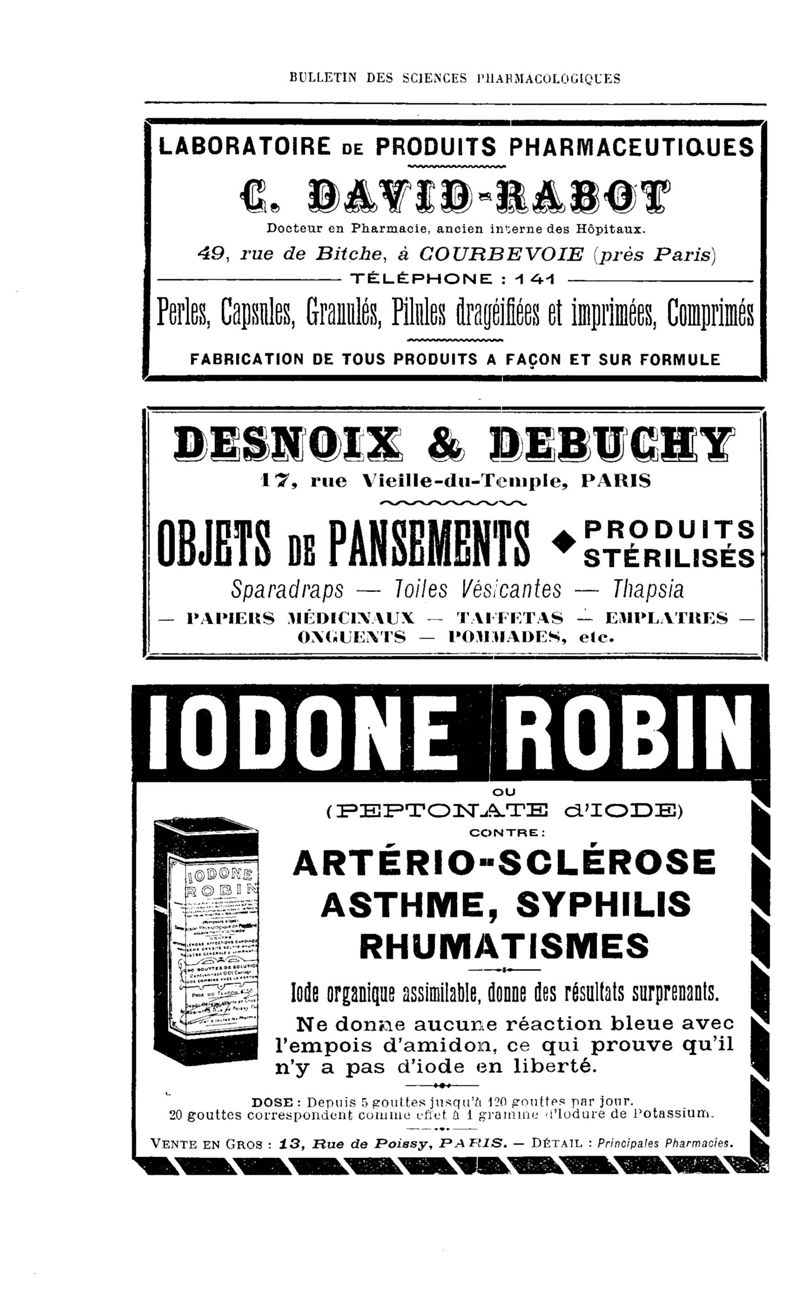 Bulletin des sciences pharmacologiques : organe scientifique et professionnel [Annexes : partie professionnelle et commerciale]