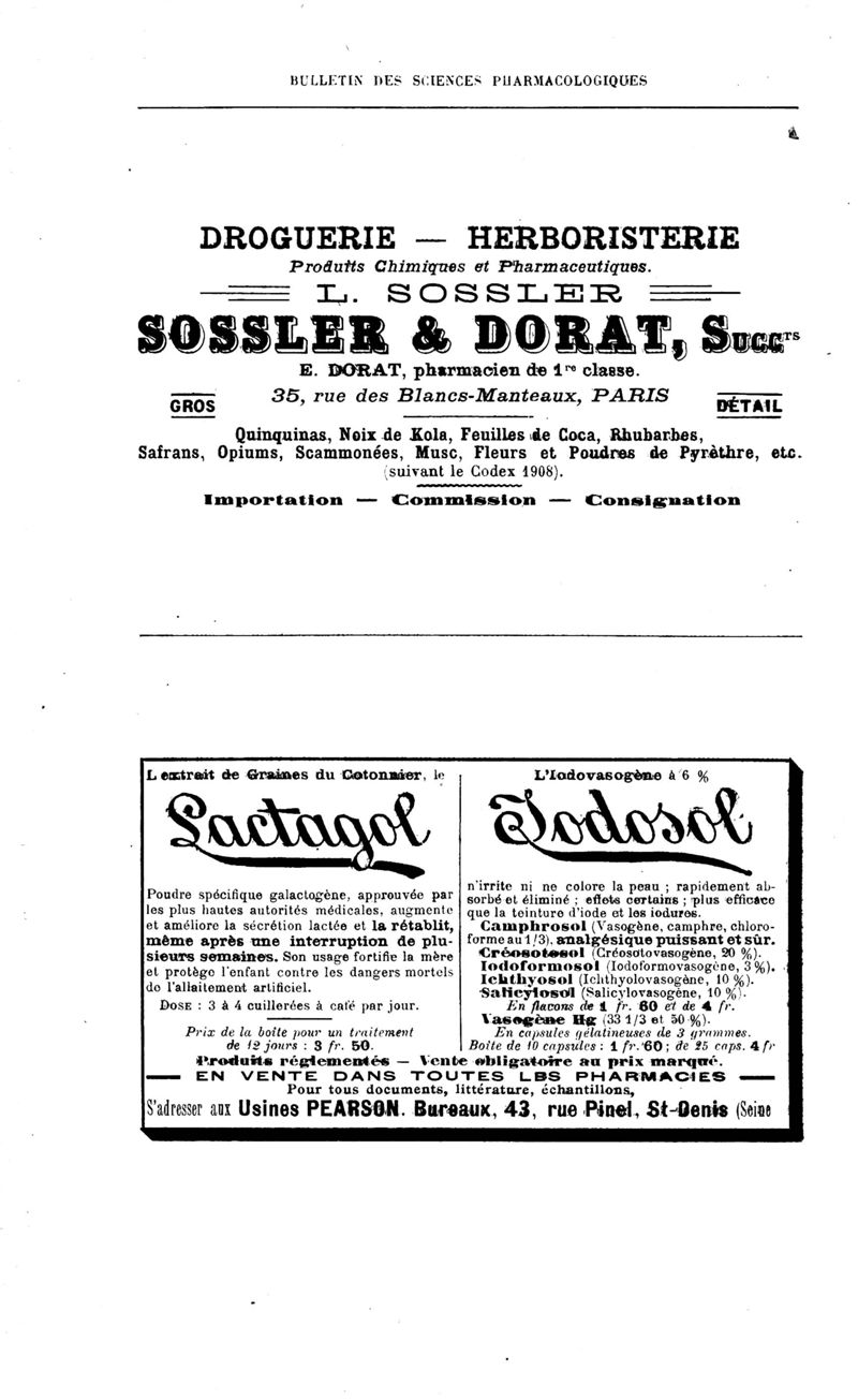 Bulletin des sciences pharmacologiques : organe scientifique et professionnel [Annexes : partie professionnelle et commerciale]