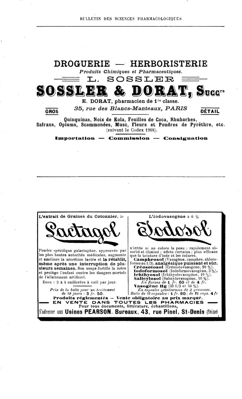 Bulletin des sciences pharmacologiques : organe scientifique et professionnel [Annexes : partie professionnelle et commerciale]