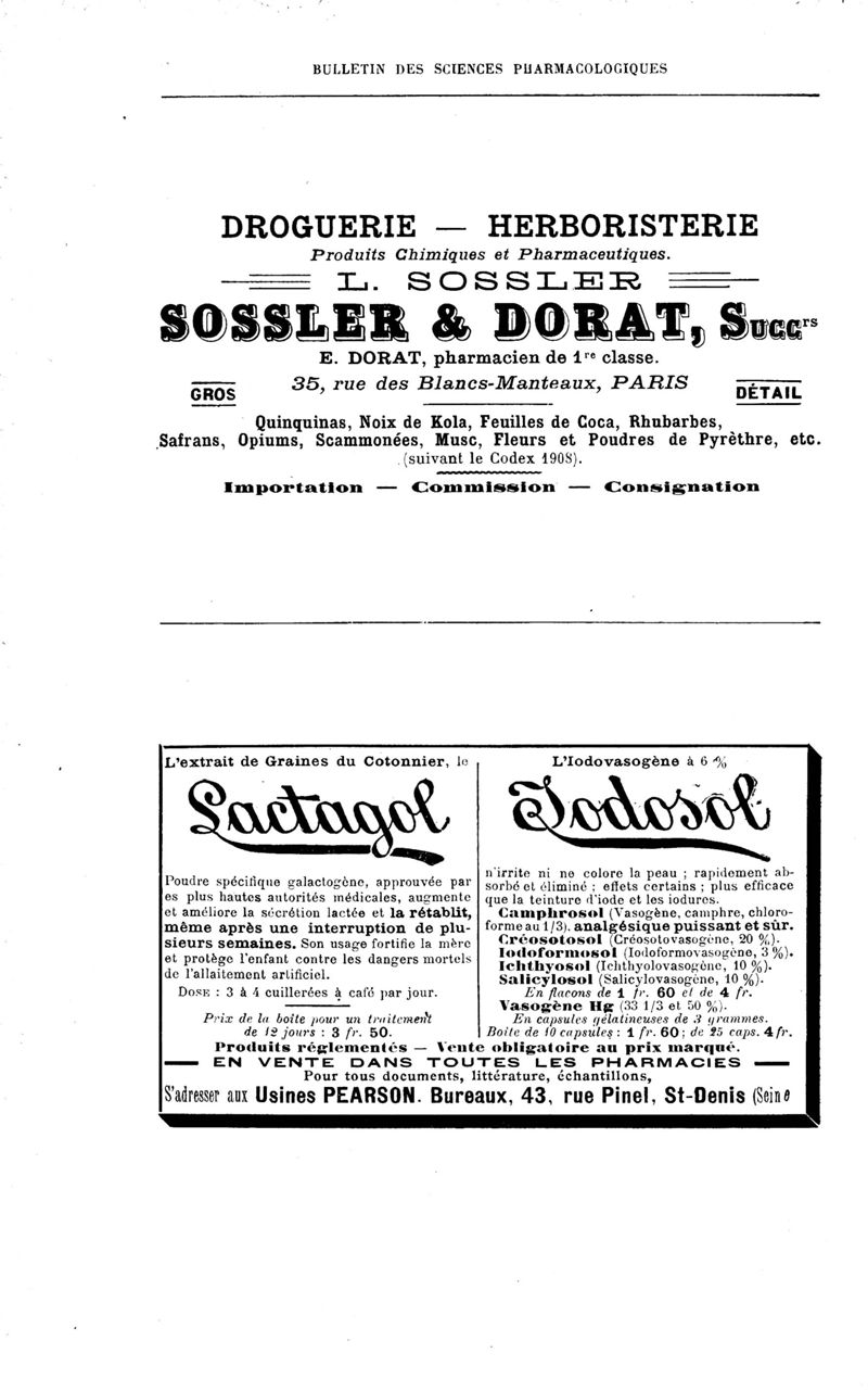 Bulletin des sciences pharmacologiques : organe scientifique et professionnel [Annexes : partie professionnelle et commerciale]