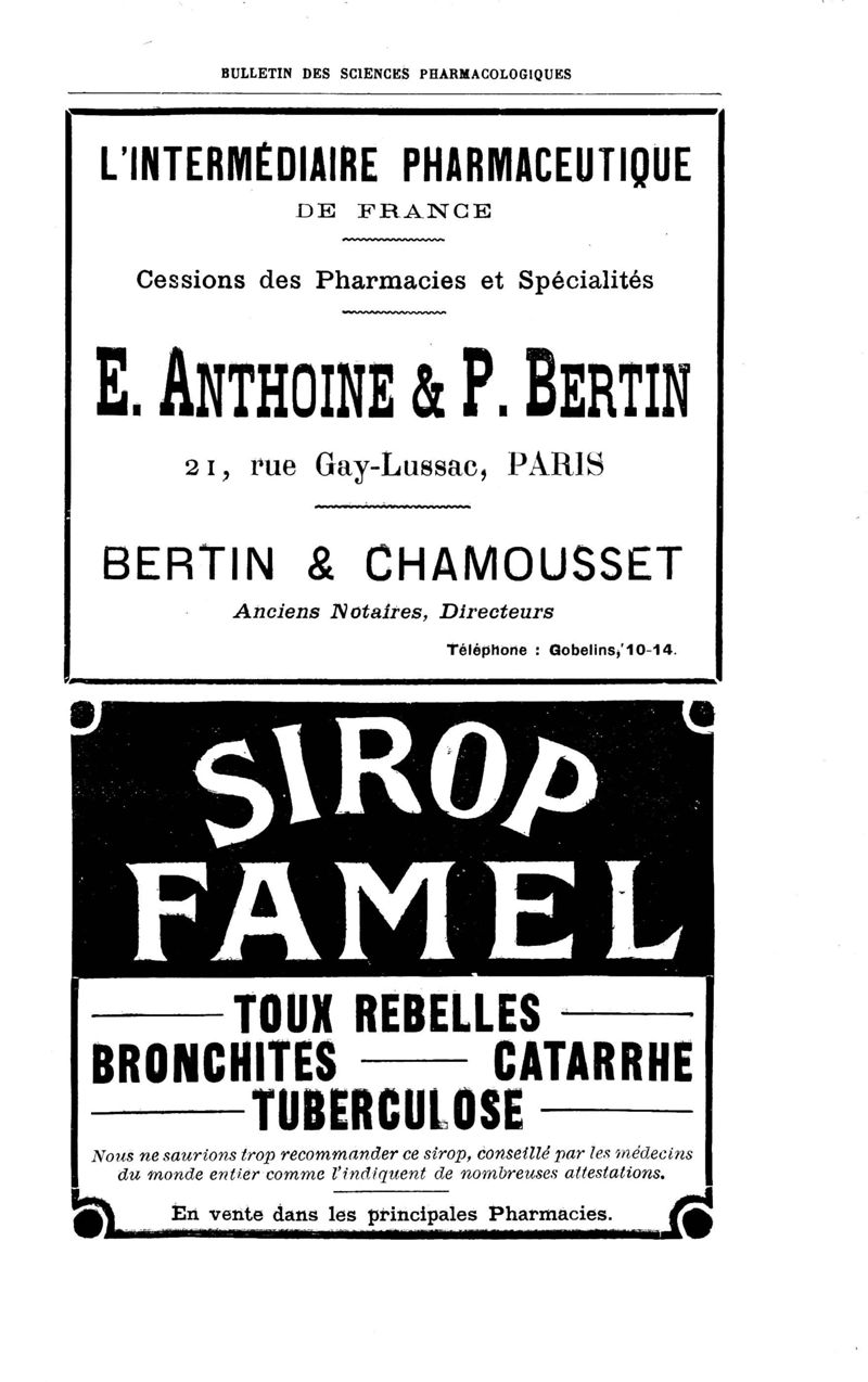Bulletin des sciences pharmacologiques : organe scientifique et professionnel [Annexes : partie professionnelle et commerciale]