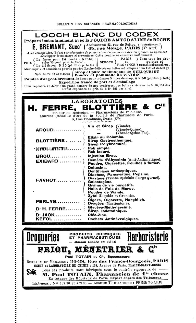 Bulletin des sciences pharmacologiques : organe scientifique et professionnel [Annexes : partie professionnelle et commerciale]