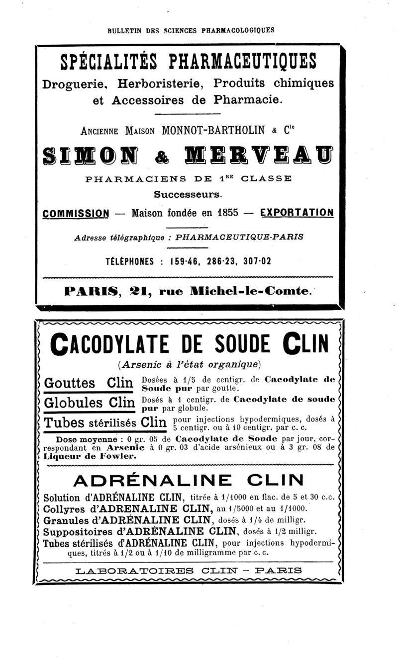 Bulletin des sciences pharmacologiques : organe scientifique et professionnel [Annexes : partie professionnelle et commerciale]