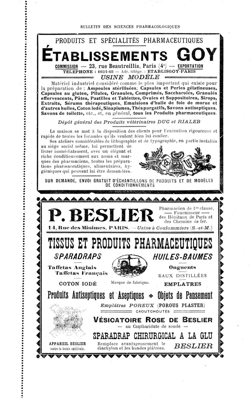 Bulletin des sciences pharmacologiques : organe scientifique et professionnel [Annexes : partie professionnelle et commerciale]