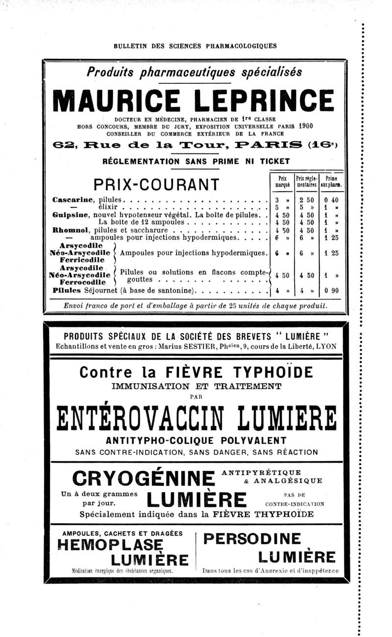 Bulletin des sciences pharmacologiques : organe scientifique et professionnel [Annexes : partie professionnelle et commerciale]