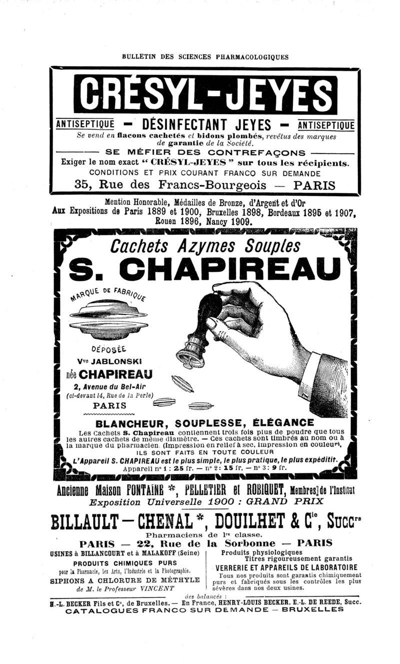 Bulletin des sciences pharmacologiques : organe scientifique et professionnel [Annexes : partie professionnelle et commerciale]