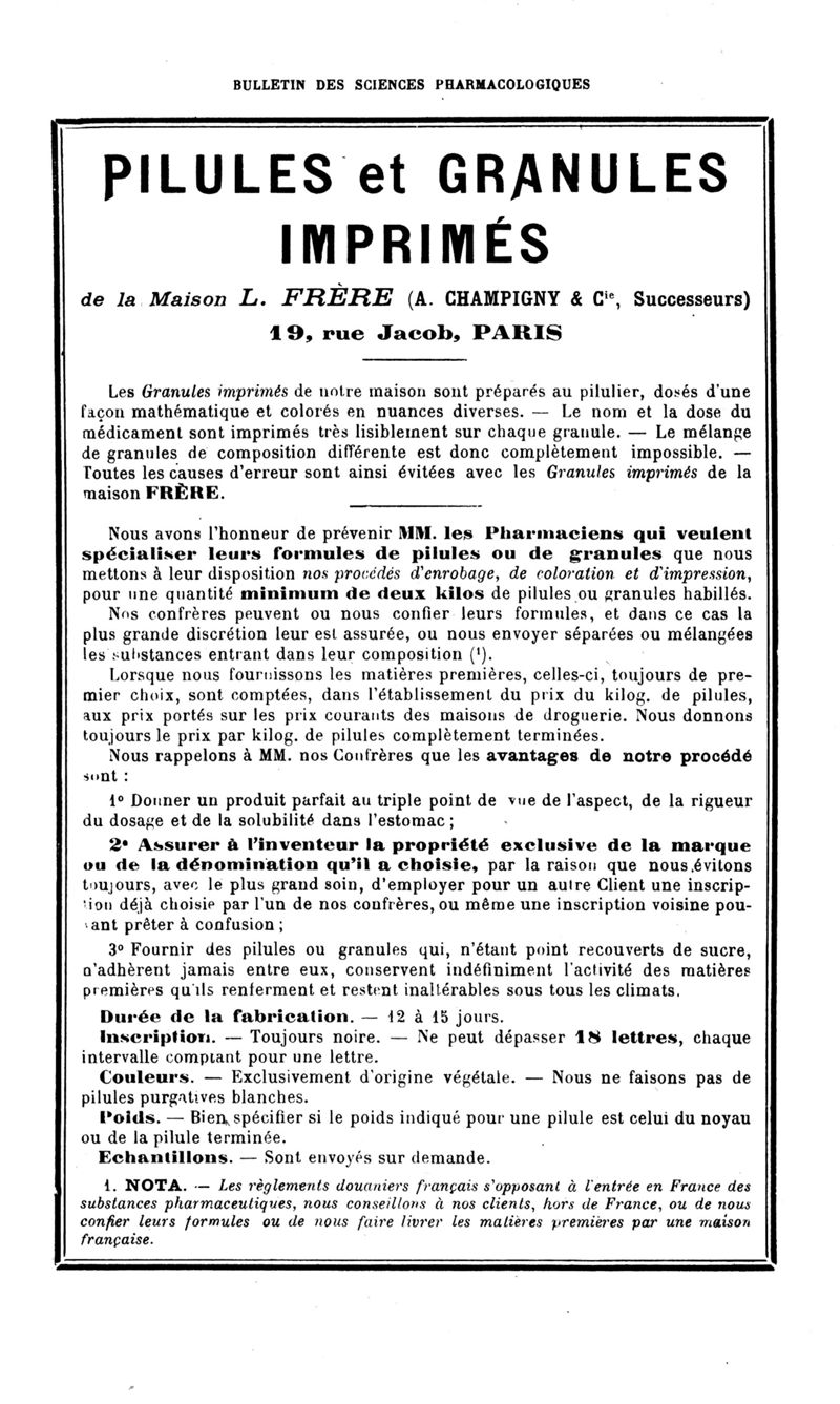 Bulletin des sciences pharmacologiques : organe scientifique et professionnel [Annexes : partie professionnelle et commerciale]