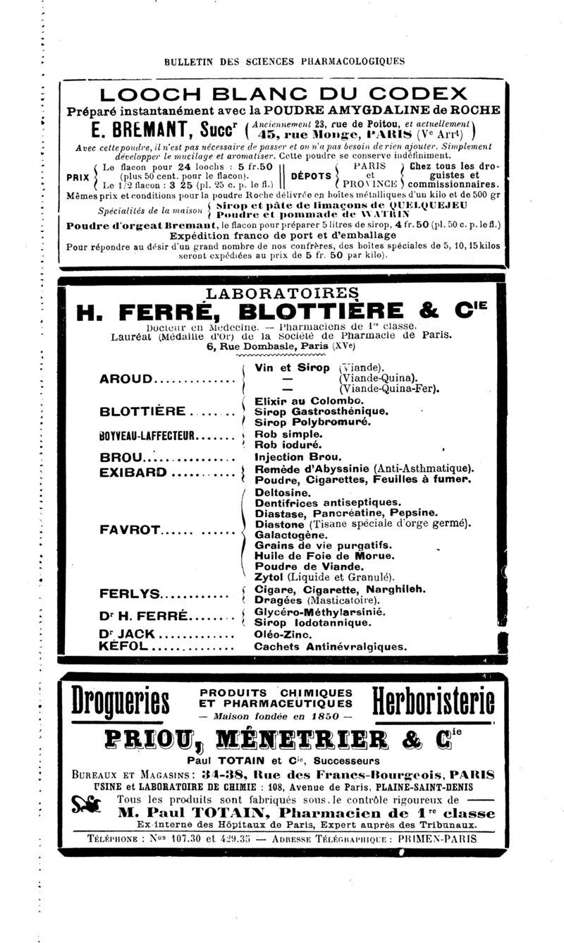 Bulletin des sciences pharmacologiques : organe scientifique et professionnel [Annexes : partie professionnelle et commerciale]