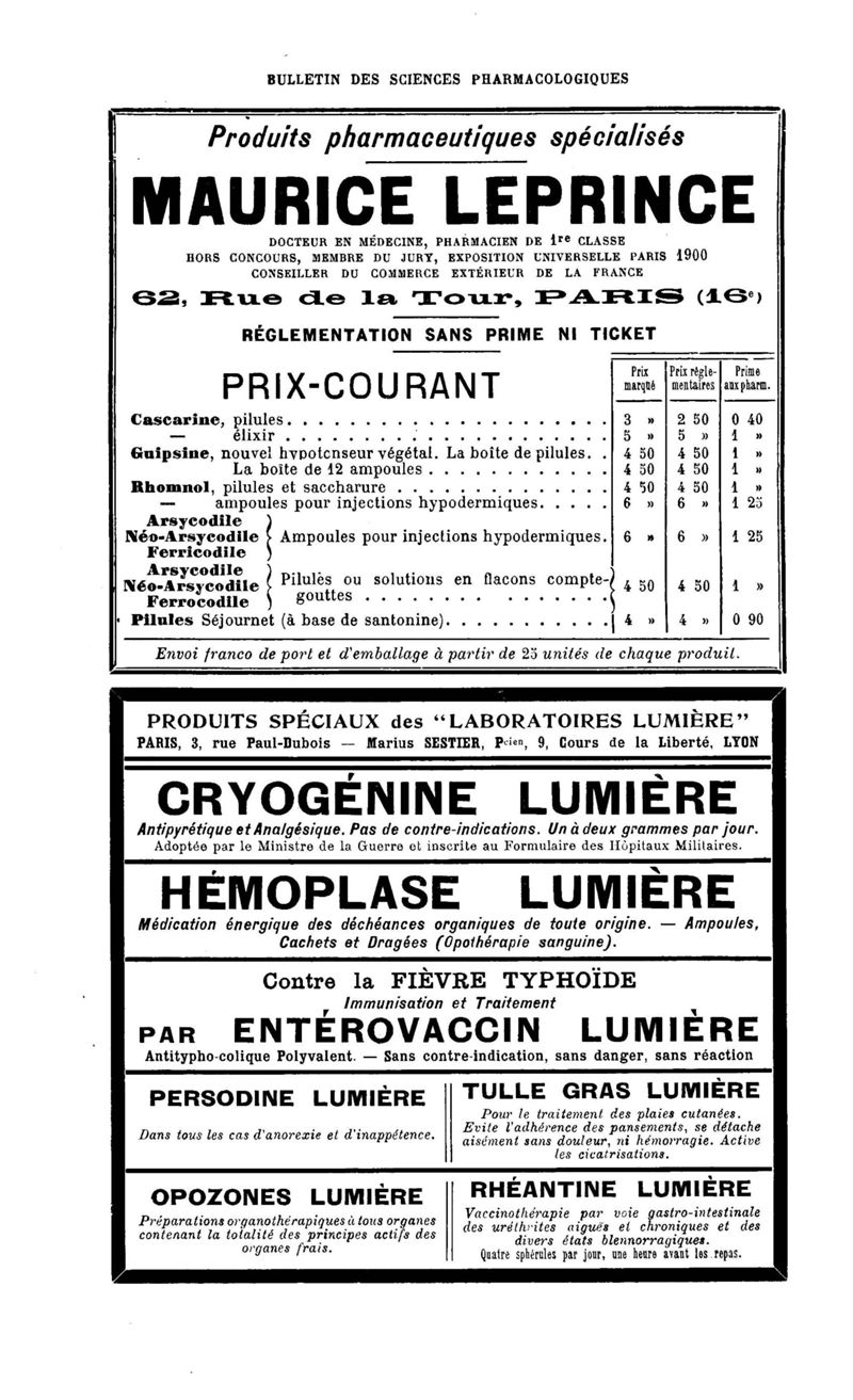 Bulletin des sciences pharmacologiques : organe scientifique et professionnel [Annexes : partie professionnelle et commerciale]