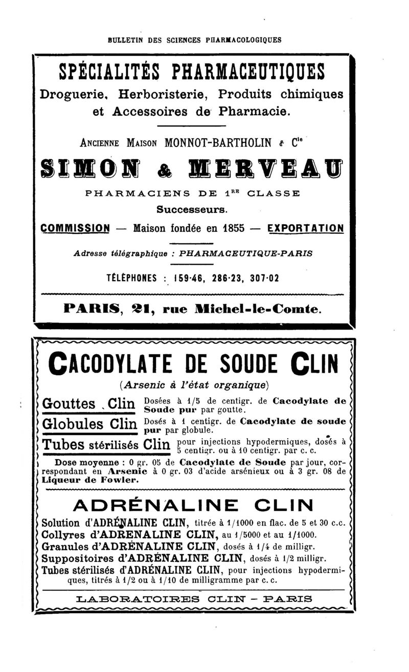 Bulletin des sciences pharmacologiques : organe scientifique et professionnel [Annexes : partie professionnelle et commerciale]