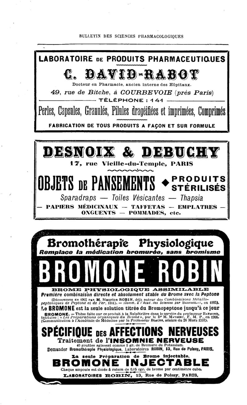 Bulletin des sciences pharmacologiques : organe scientifique et professionnel [Annexes : partie professionnelle et commerciale]
