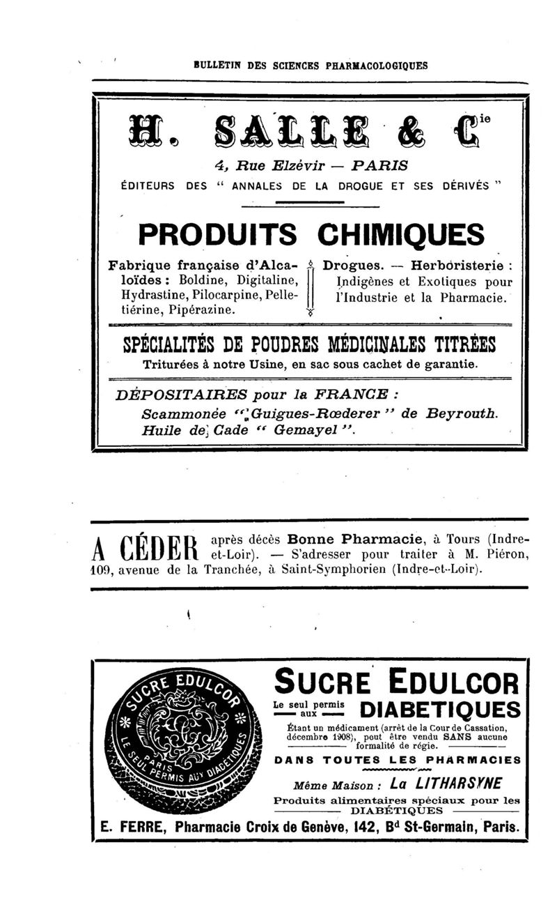 Bulletin des sciences pharmacologiques : organe scientifique et professionnel [Annexes : partie professionnelle et commerciale]
