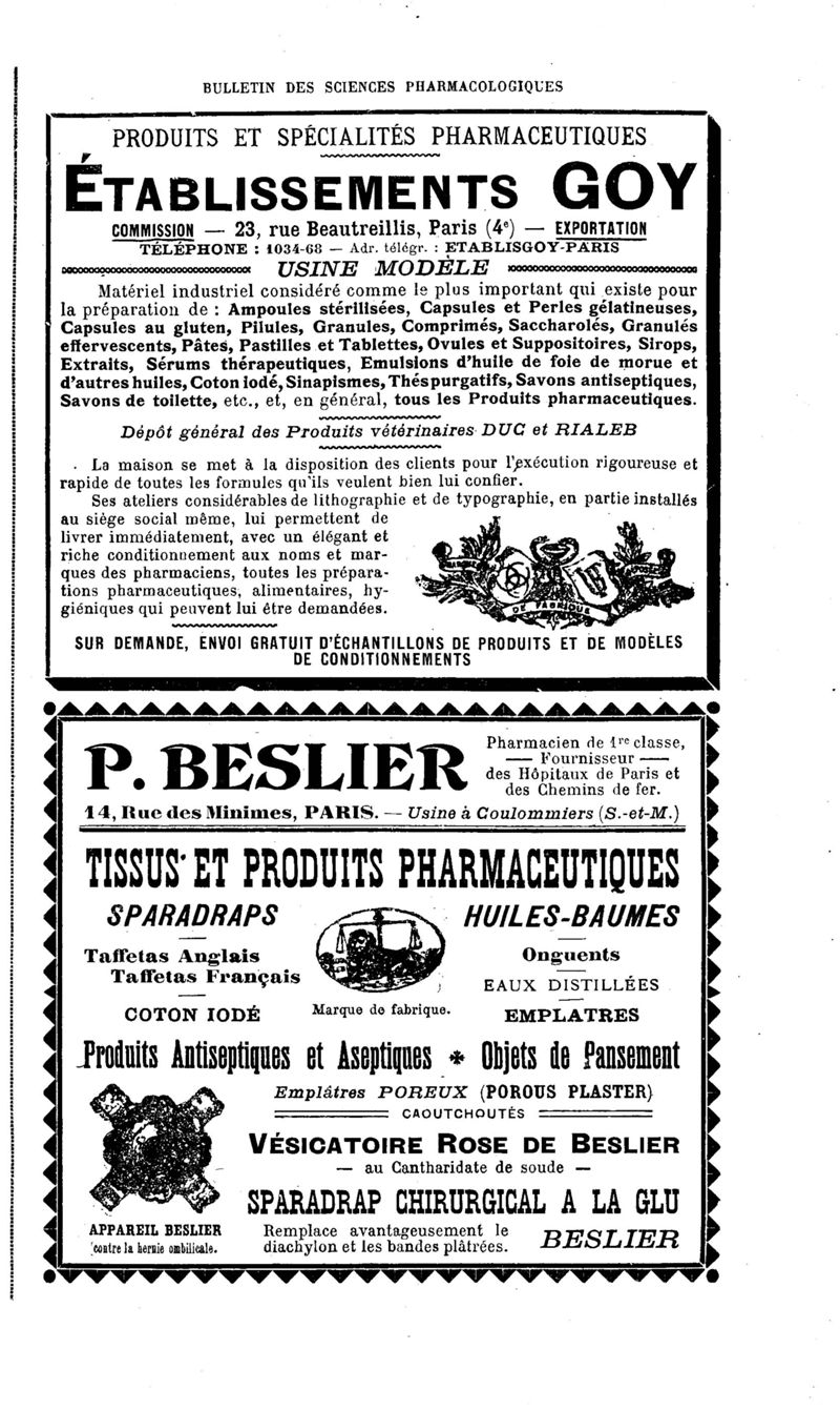 Bulletin des sciences pharmacologiques : organe scientifique et professionnel [Annexes : partie professionnelle et commerciale]