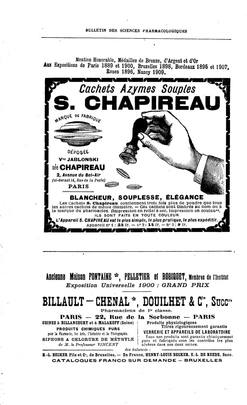 Bulletin des sciences pharmacologiques : organe scientifique et professionnel [Annexes : partie professionnelle et commerciale]