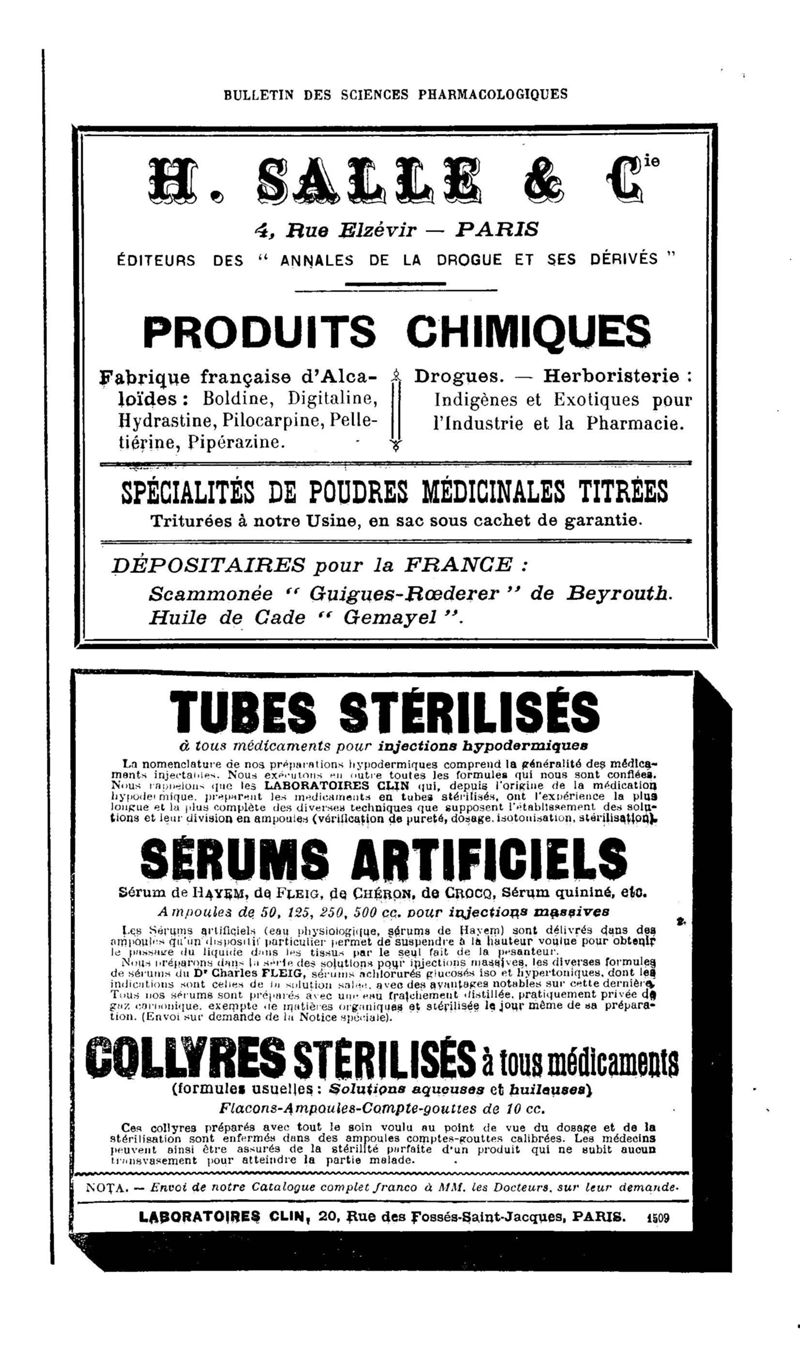 Bulletin des sciences pharmacologiques : organe scientifique et professionnel [Annexes : partie professionnelle et commerciale]