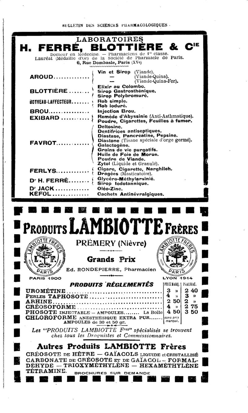 Bulletin des sciences pharmacologiques : organe scientifique et professionnel [Annexes : partie professionnelle et commerciale]