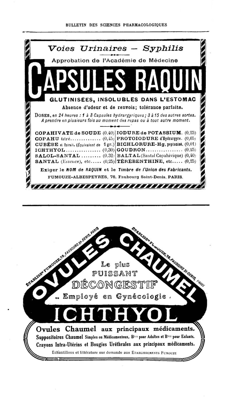 Bulletin des sciences pharmacologiques : organe scientifique et professionnel [Annexes : partie professionnelle et commerciale]