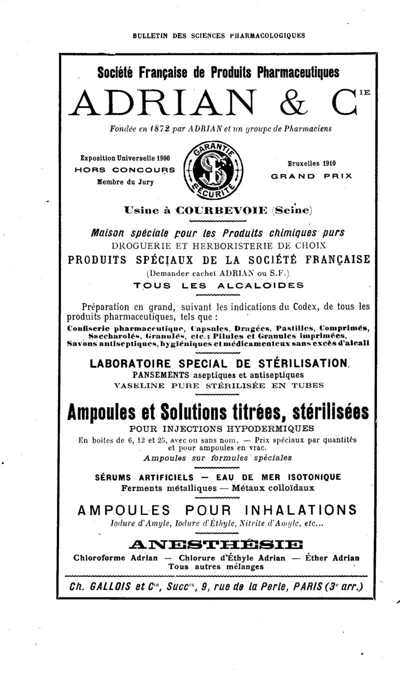 Bulletin des sciences pharmacologiques : organe scientifique et professionnel [Annexes : partie professionnelle et commerciale]
