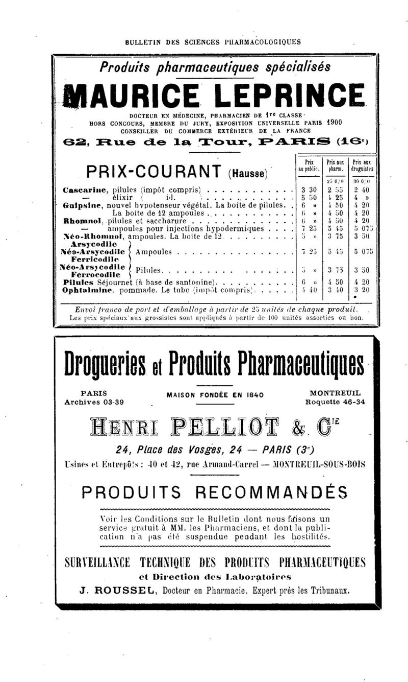 Bulletin des sciences pharmacologiques : organe scientifique et professionnel [Annexes : partie professionnelle et commerciale]