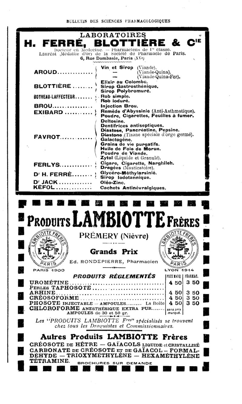 Bulletin des sciences pharmacologiques : organe scientifique et professionnel [Annexes : partie professionnelle et commerciale]