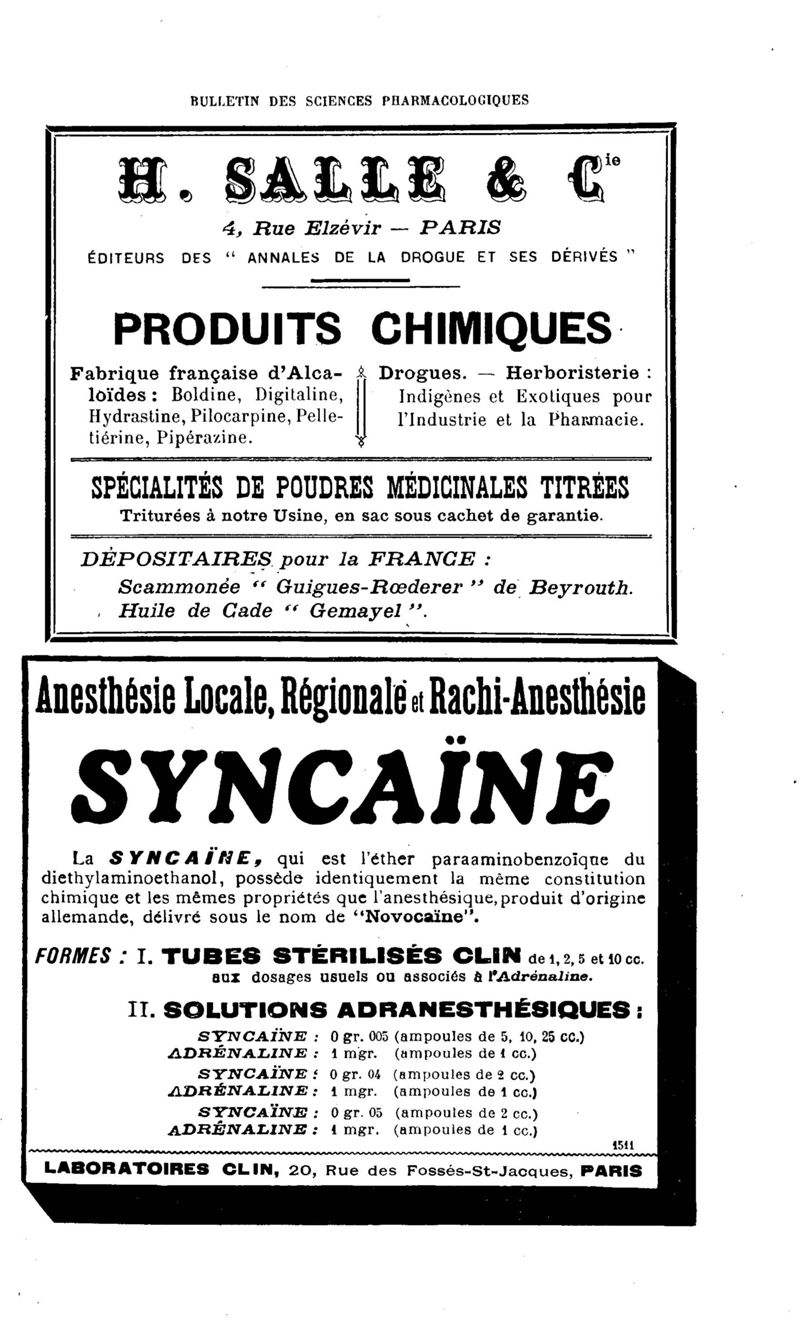 Bulletin des sciences pharmacologiques : organe scientifique et professionnel [Annexes : partie professionnelle et commerciale]