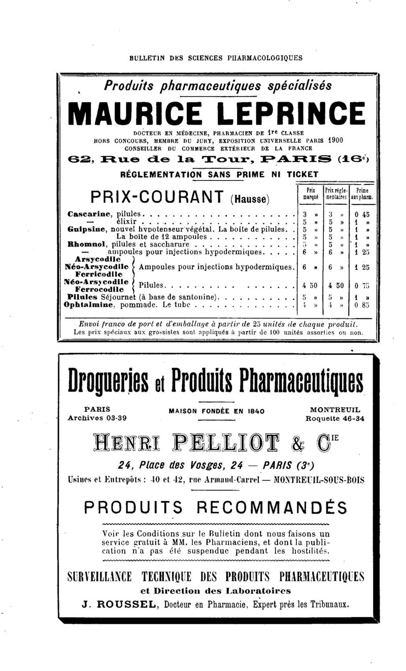 Bulletin des sciences pharmacologiques : organe scientifique et professionnel [Annexes : partie professionnelle et commerciale]