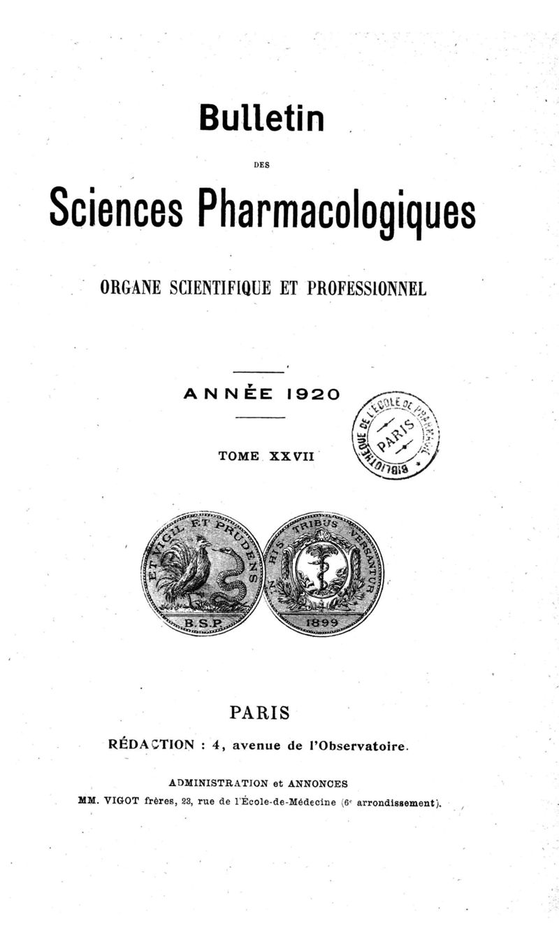 Bulletin des sciences pharmacologiques : organe scientifique et professionnel [Bulletin scientifique]