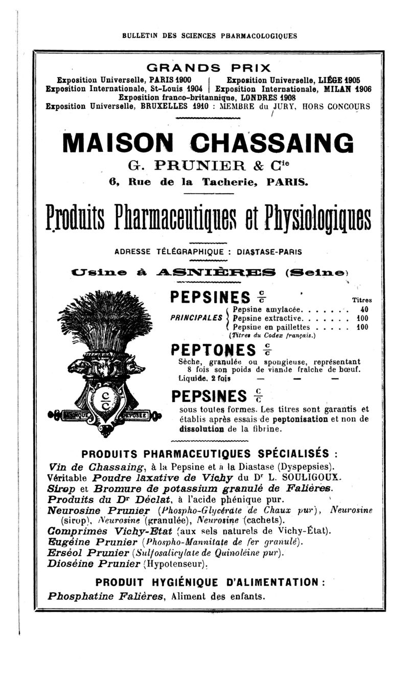 Bulletin des sciences pharmacologiques : organe scientifique et professionnel [Bulletin des intérêts professionnels]
