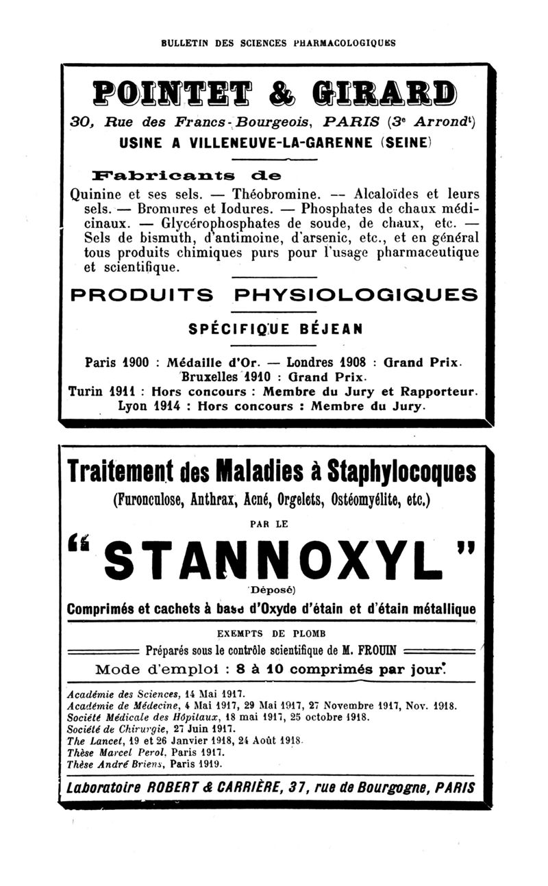 Bulletin des sciences pharmacologiques : organe scientifique et professionnel [Bulletin des intérêts professionnels]