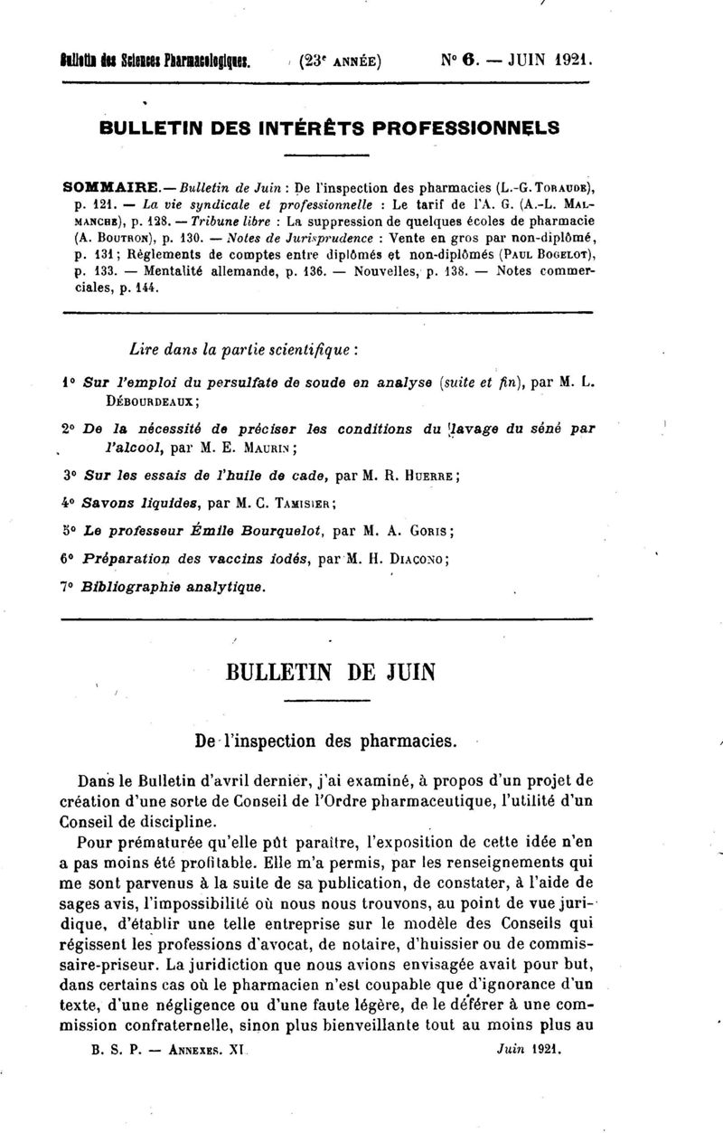 Bulletin des sciences pharmacologiques : organe scientifique et professionnel [Bulletin des intérêts professionnels]