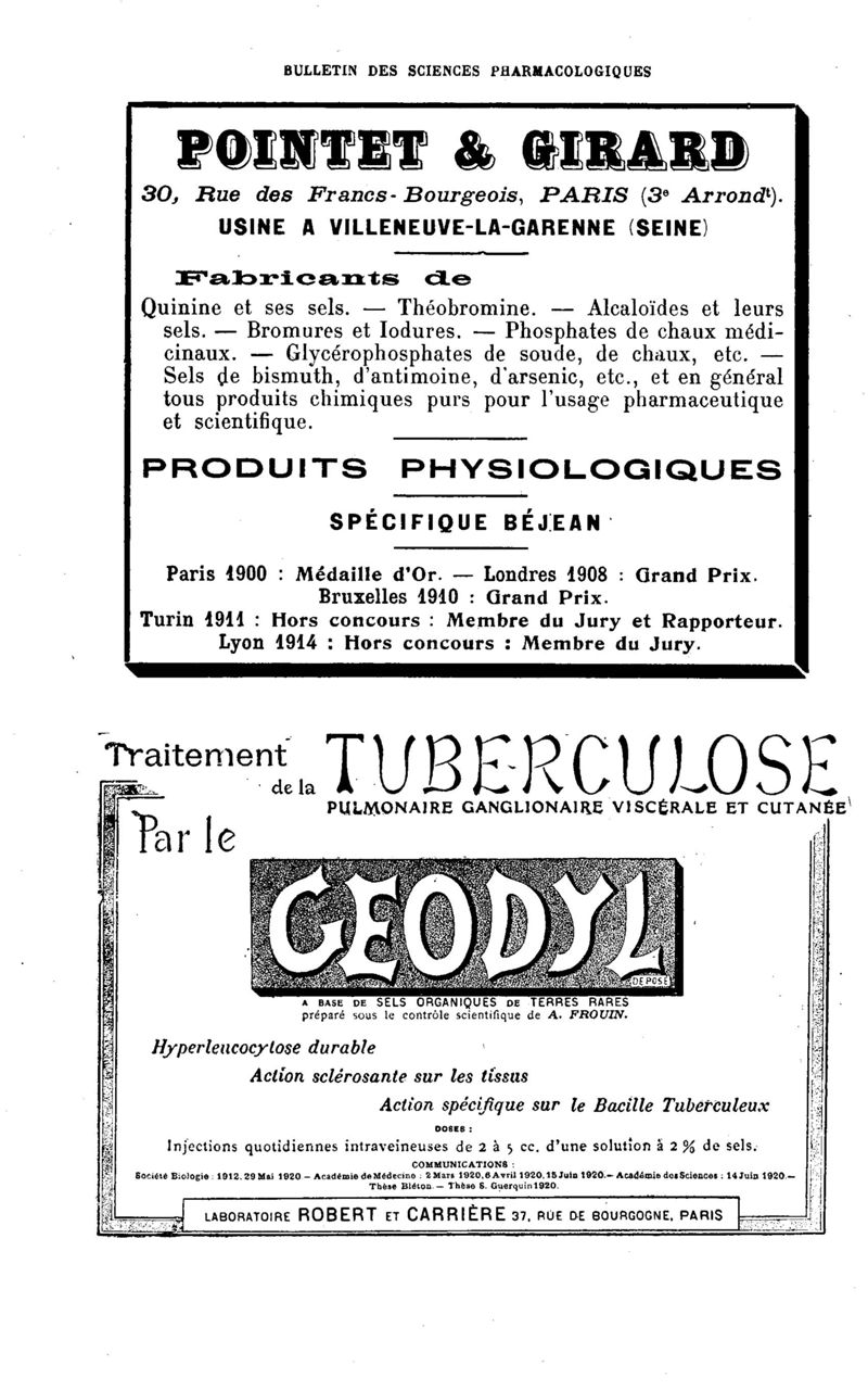 Bulletin des sciences pharmacologiques : organe scientifique et professionnel [Bulletin des intérêts professionnels]