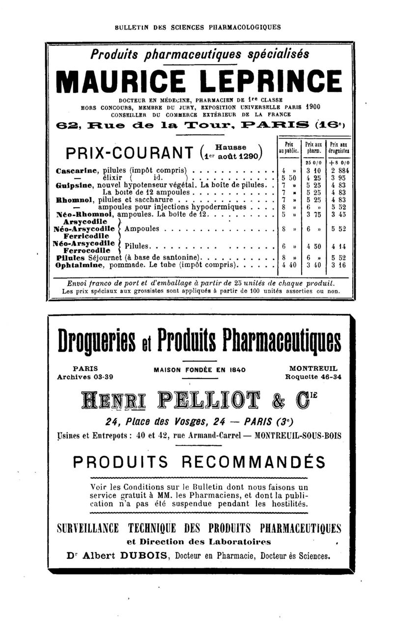 Bulletin des sciences pharmacologiques : organe scientifique et professionnel [Bulletin des intérêts professionnels]