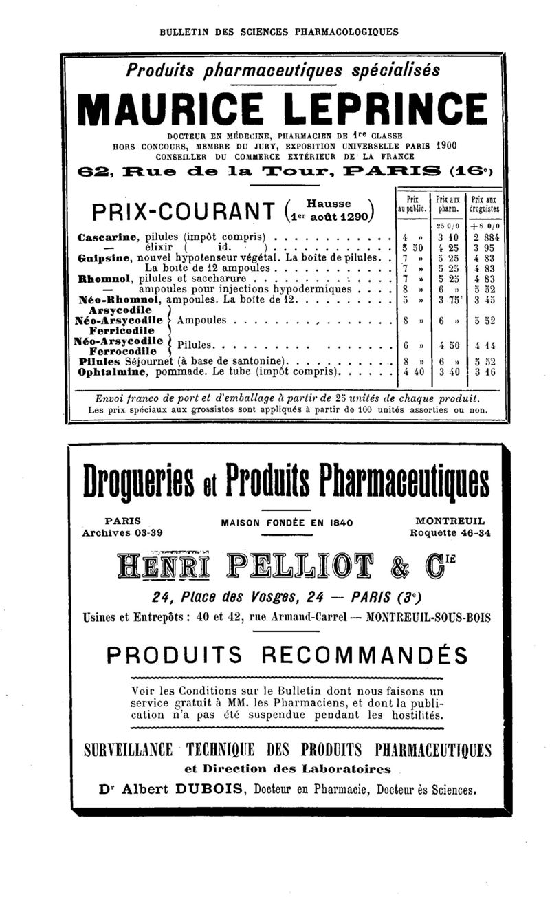 Bulletin des sciences pharmacologiques : organe scientifique et professionnel [Bulletin des intérêts professionnels]