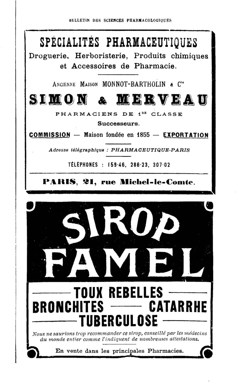 Bulletin des sciences pharmacologiques : organe scientifique et professionnel [Bulletin des intérêts professionnels]