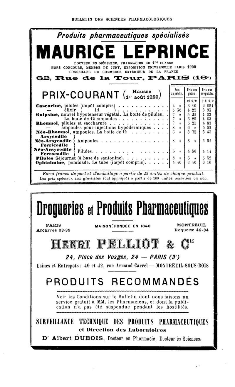 Bulletin des sciences pharmacologiques : organe scientifique et professionnel [Bulletin des intérêts professionnels]