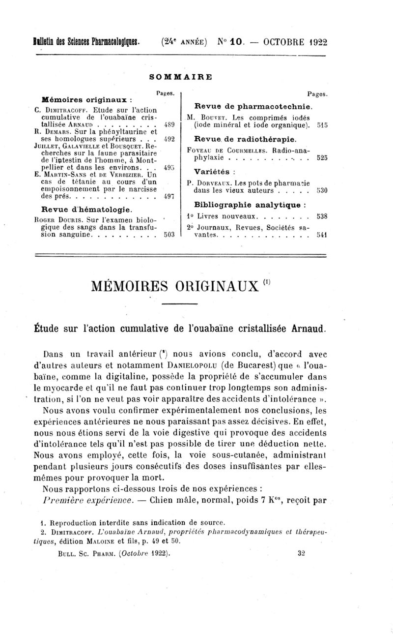 Bulletin des sciences pharmacologiques : organe scientifique et professionnel [Bulletin scientifique]