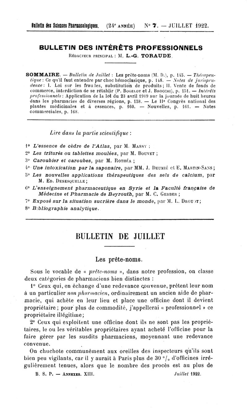 Bulletin des sciences pharmacologiques : organe scientifique et professionnel [Bulletin des intérêts professionnels]