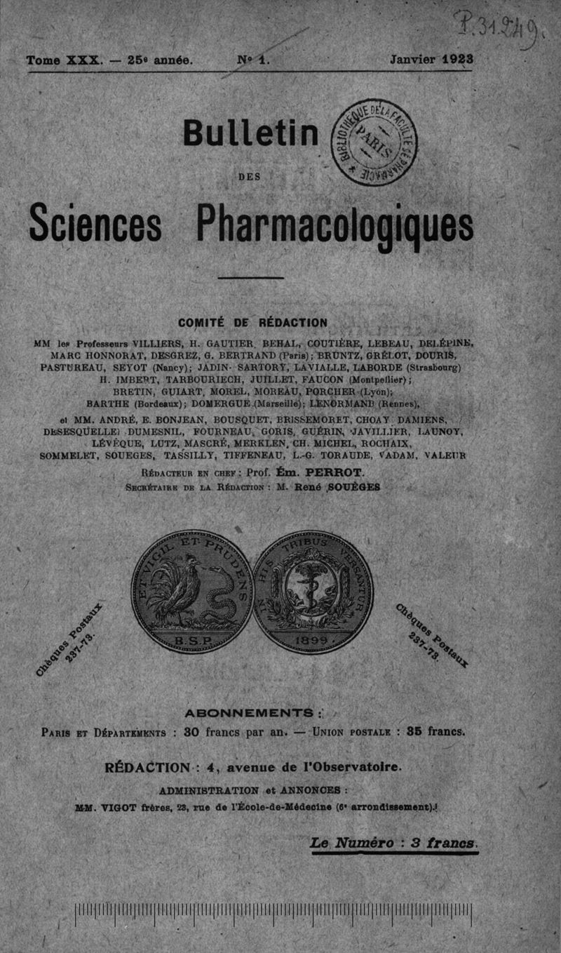 Bulletin des sciences pharmacologiques : organe scientifique et professionnel [Bulletin scientifique]