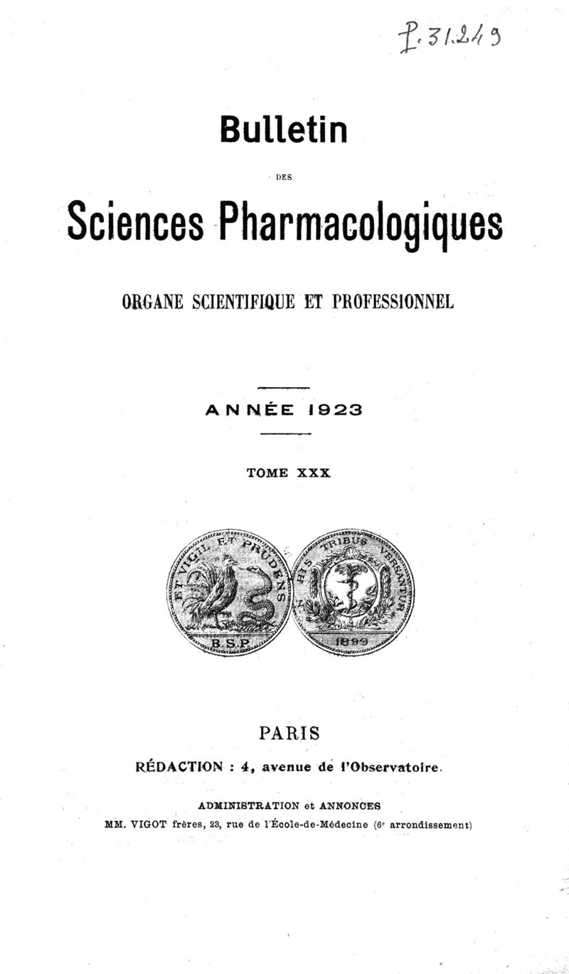 Bulletin des sciences pharmacologiques : organe scientifique et professionnel [Bulletin scientifique]