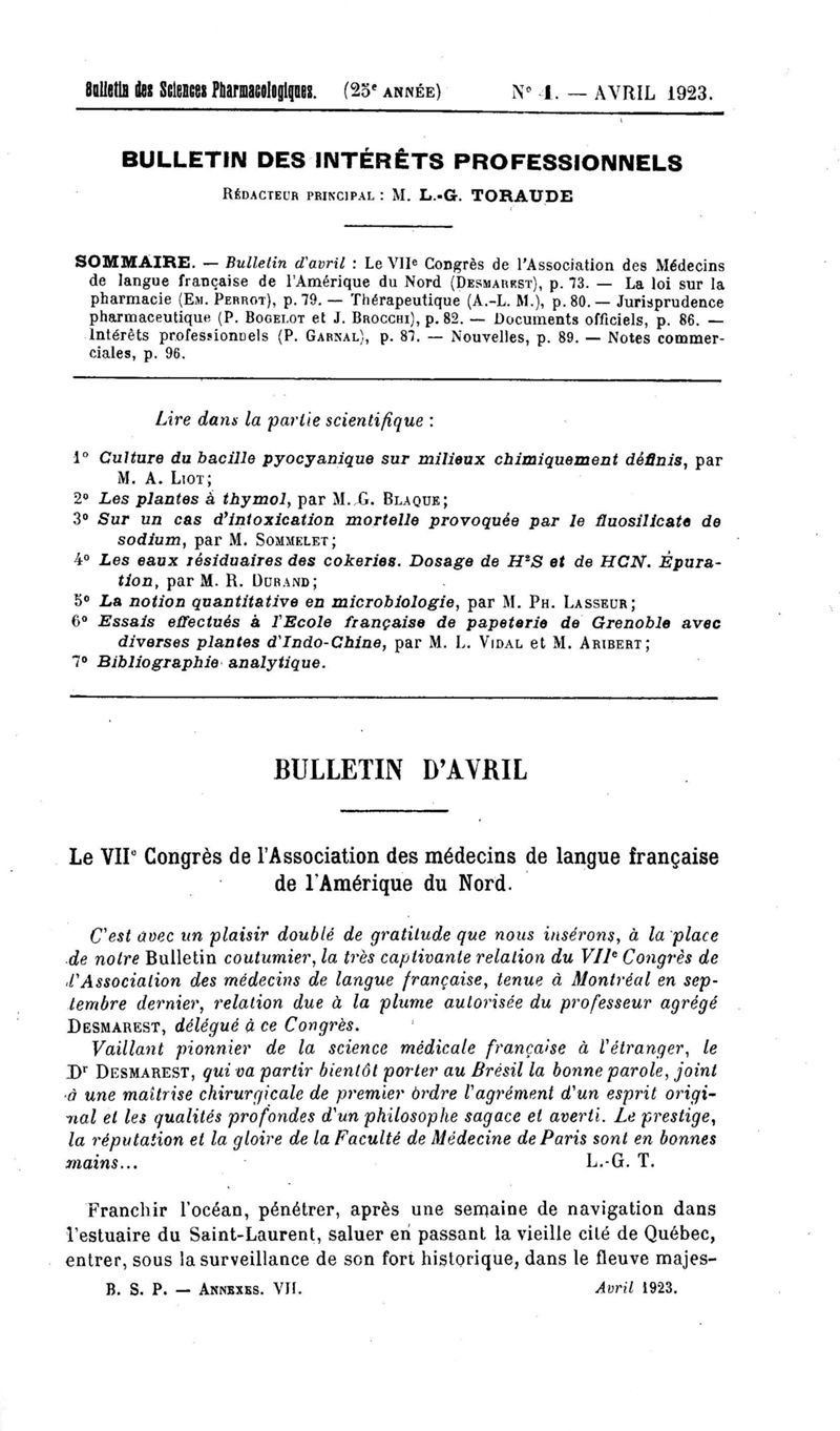 Bulletin des sciences pharmacologiques : organe scientifique et professionnel [Bulletin des intérêts professionnels]