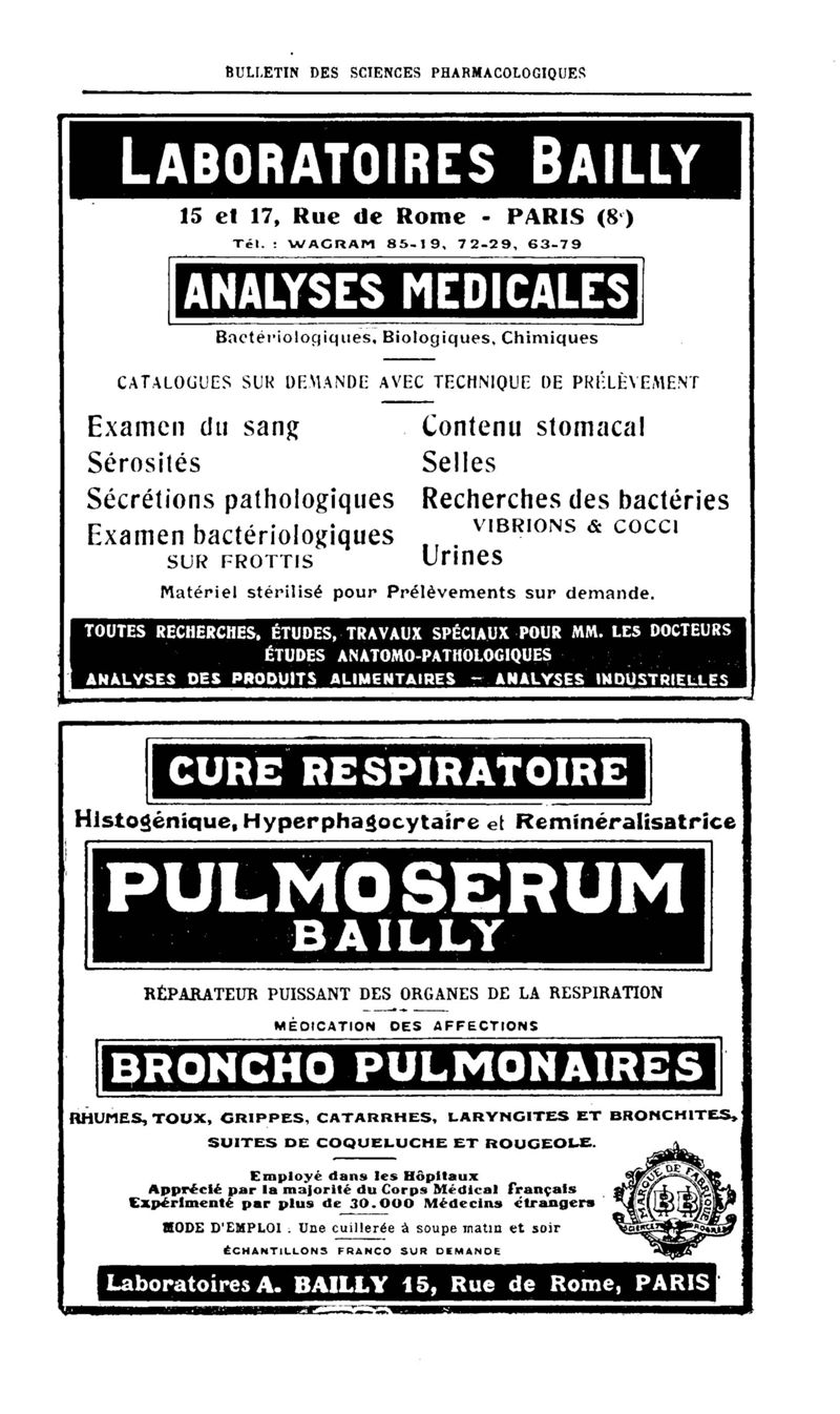 Bulletin des sciences pharmacologiques : organe scientifique et professionnel [Bulletin des intérêts professionnels]