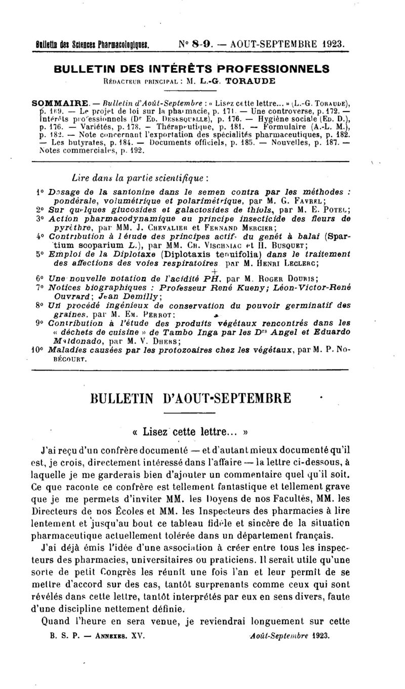 Bulletin des sciences pharmacologiques : organe scientifique et professionnel [Bulletin des intérêts professionnels]